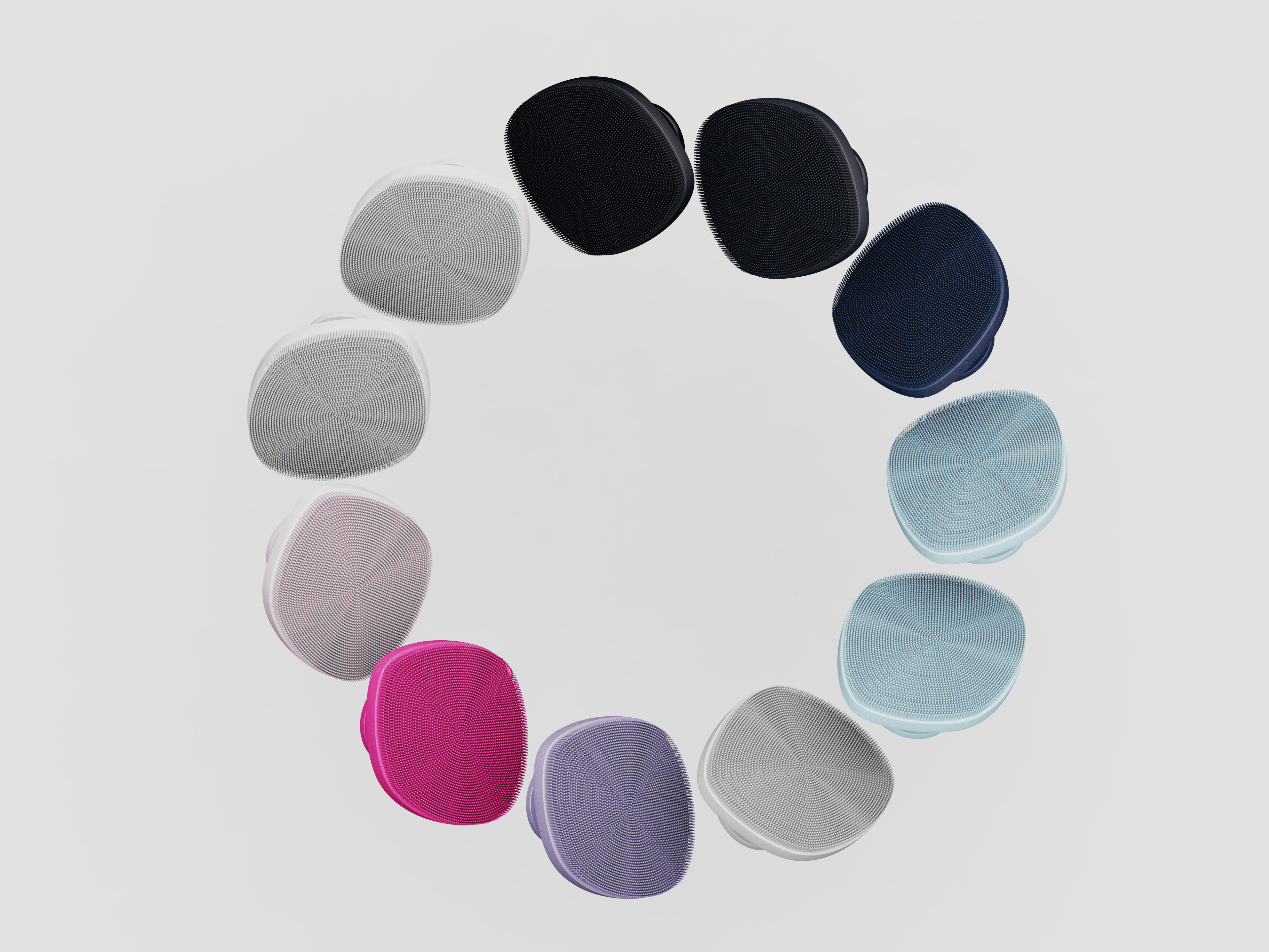 Design a compact facial device combining cleansing and massage functions. Ensure ergonomic comfort, vibration performance, and manufacturable form within a minimal aesthetic.