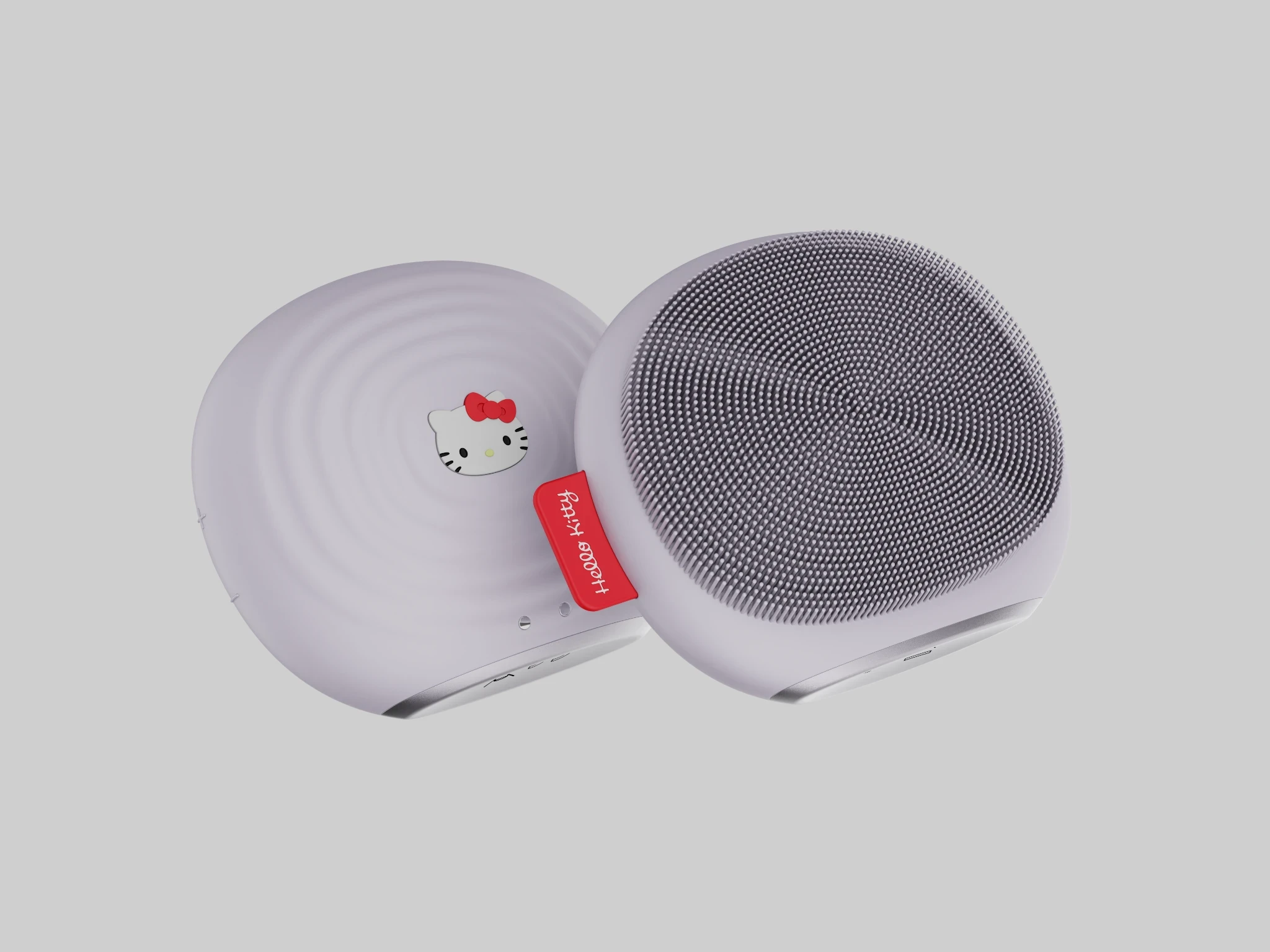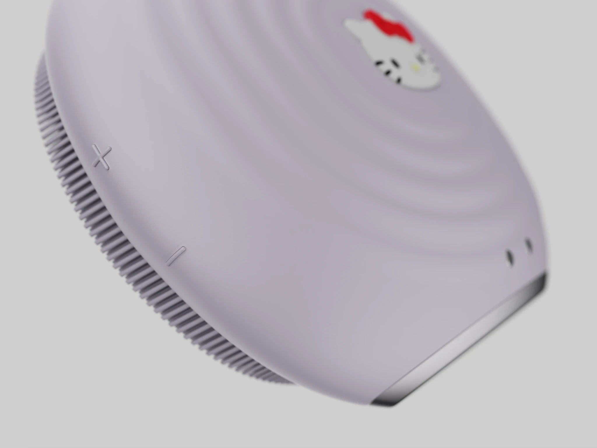 The Hello Kitty Sonic Facial Brush combines sonic-powered cleansing with targeted facial massage. Soft silicone bristles remove surface residue, while a contoured reverse surface delivers low-frequency massage. Producing over 7,500 pulses per minute, the form balances ergonomic handling with the playful aesthetic of the Hello Kitty brand.