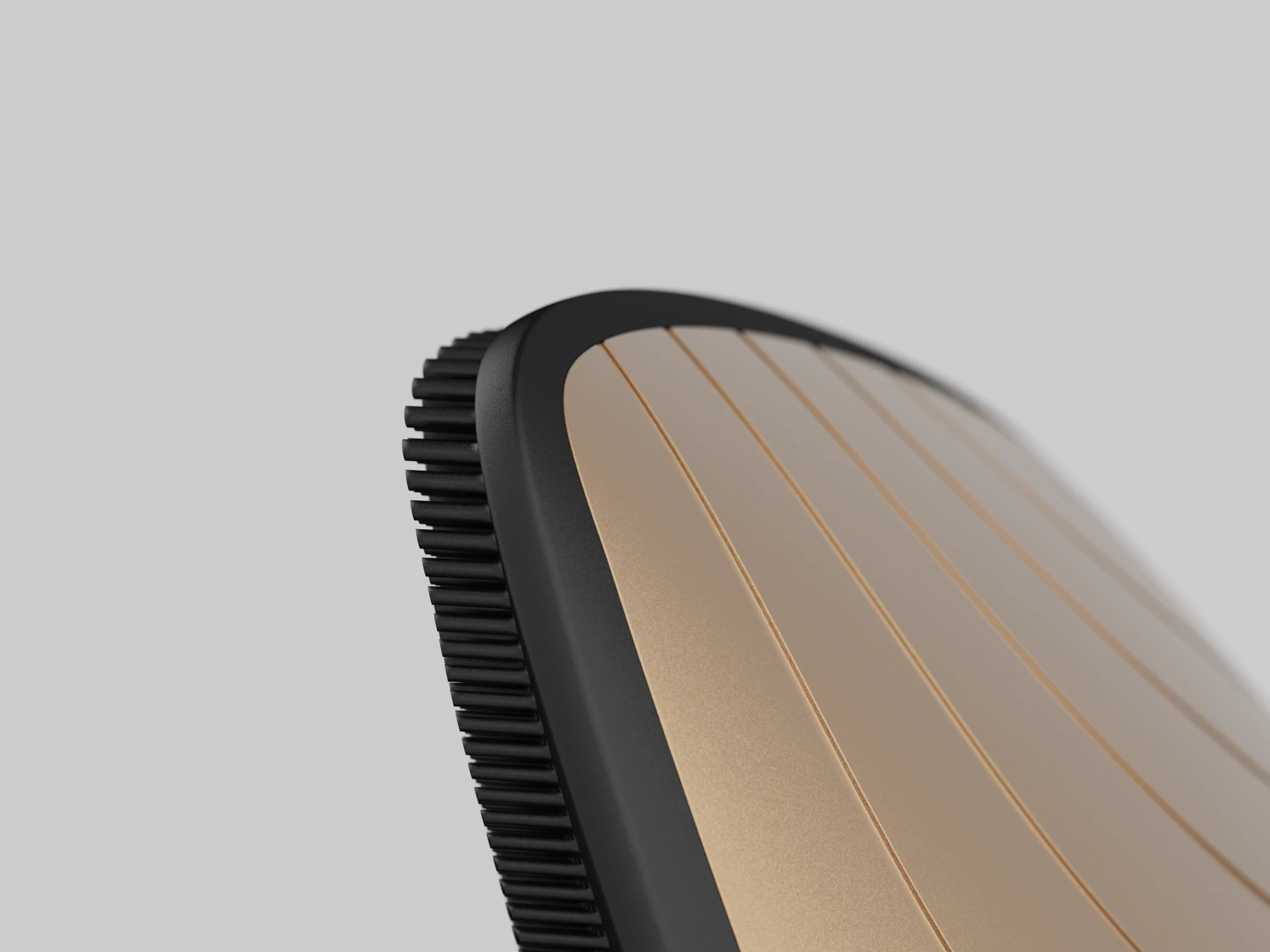 Designed oval form for comfort and visual alignment with brand aesthetics