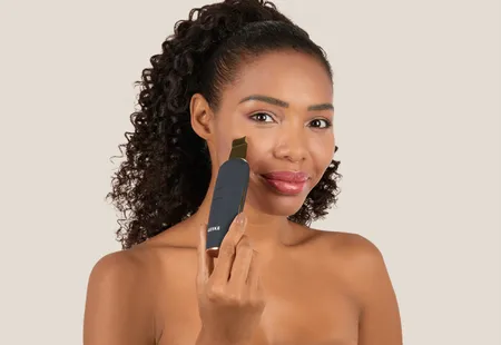 The Ionic Blackhead Remover & Exfoliator combines microcurrent, sonic vibration, and ion-based technologies for skin toning, cleansing, and exfoliation. Functions include pore cleaning, heating, and red light therapy, all housed in a compact, user-friendly form.