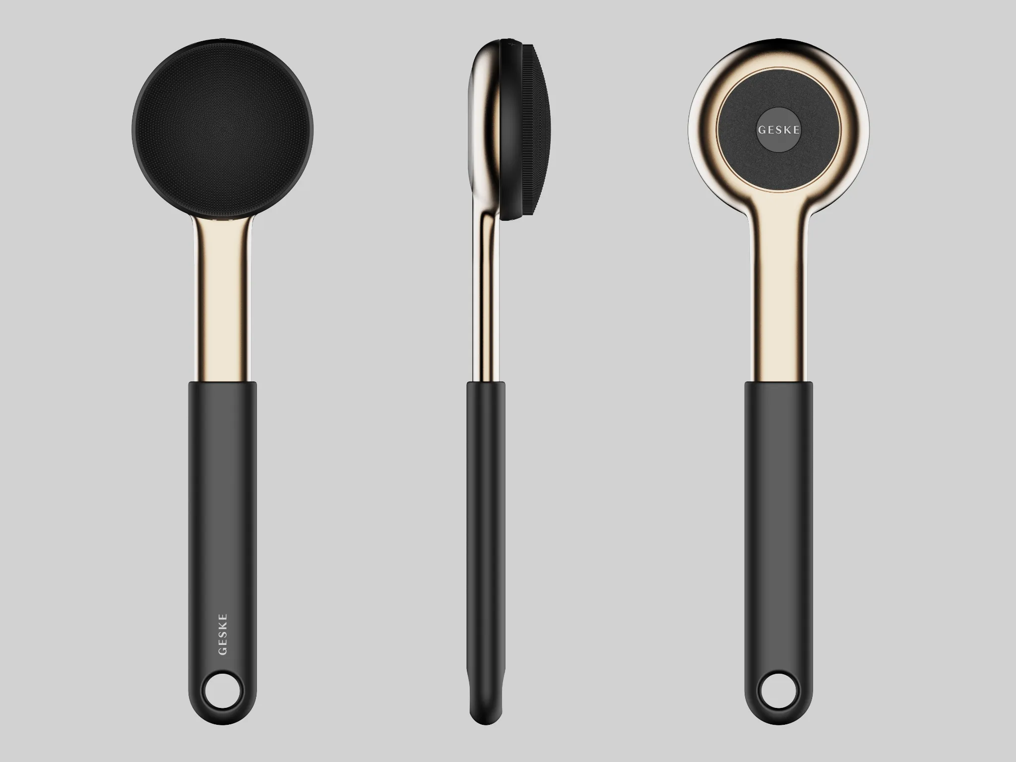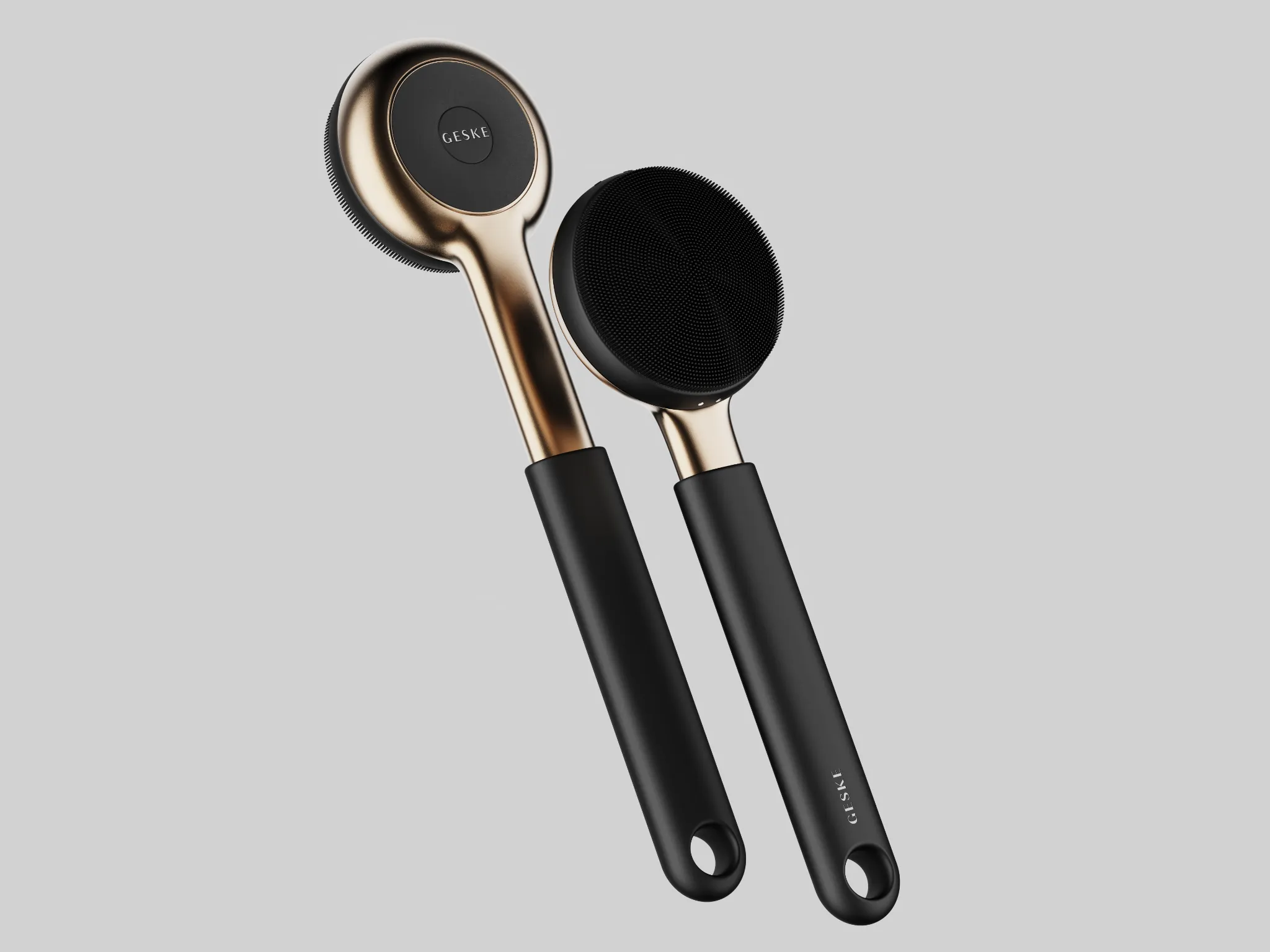 Design a body cleansing device integrating daily cleansing and targeted exfoliation functions in a compact, ergonomic form. Ensure reachability, adaptability, and manufacturability.