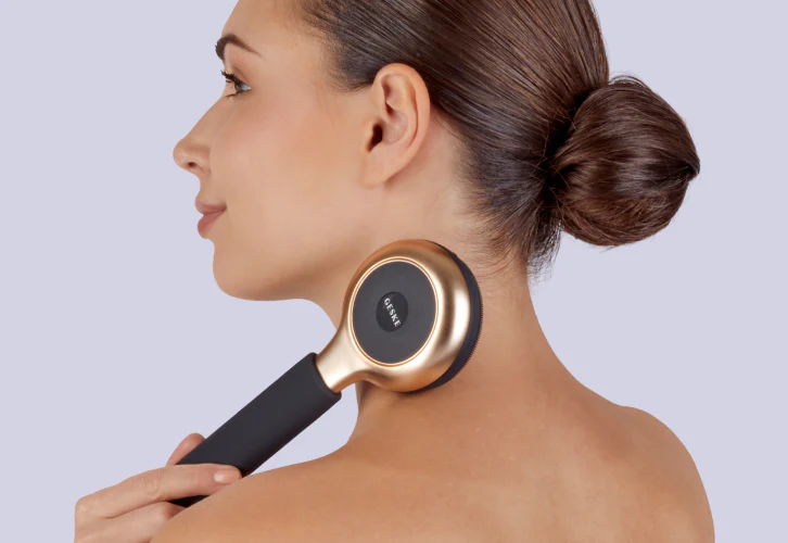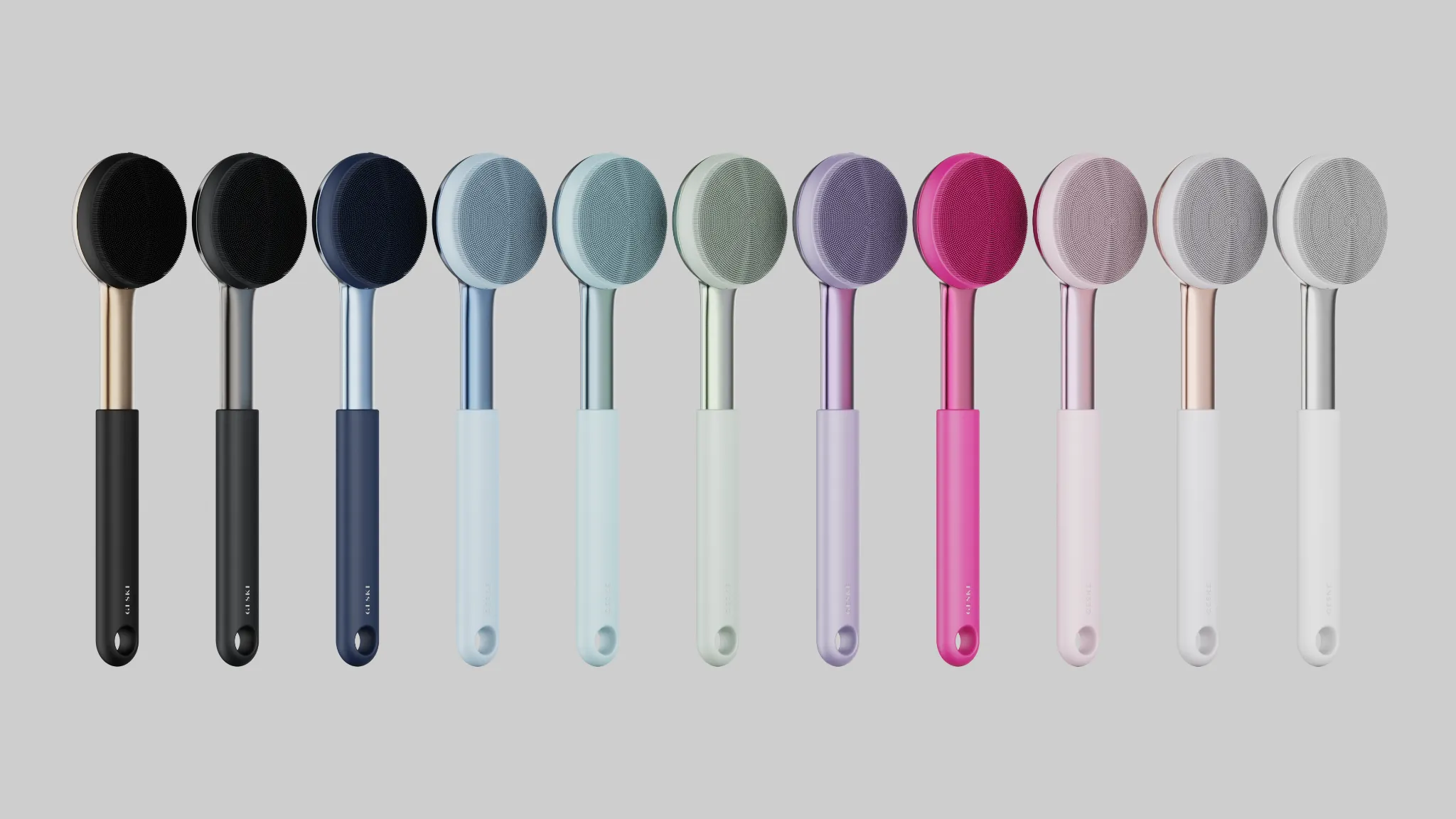 The Sonic Full Body Brush & Intensive Exfoliator features soft silicone bristles on one side and a textured exfoliating surface on the reverse. A detachable telescopic handle extends reach for hard-to-access areas while maintaining a compact footprint.