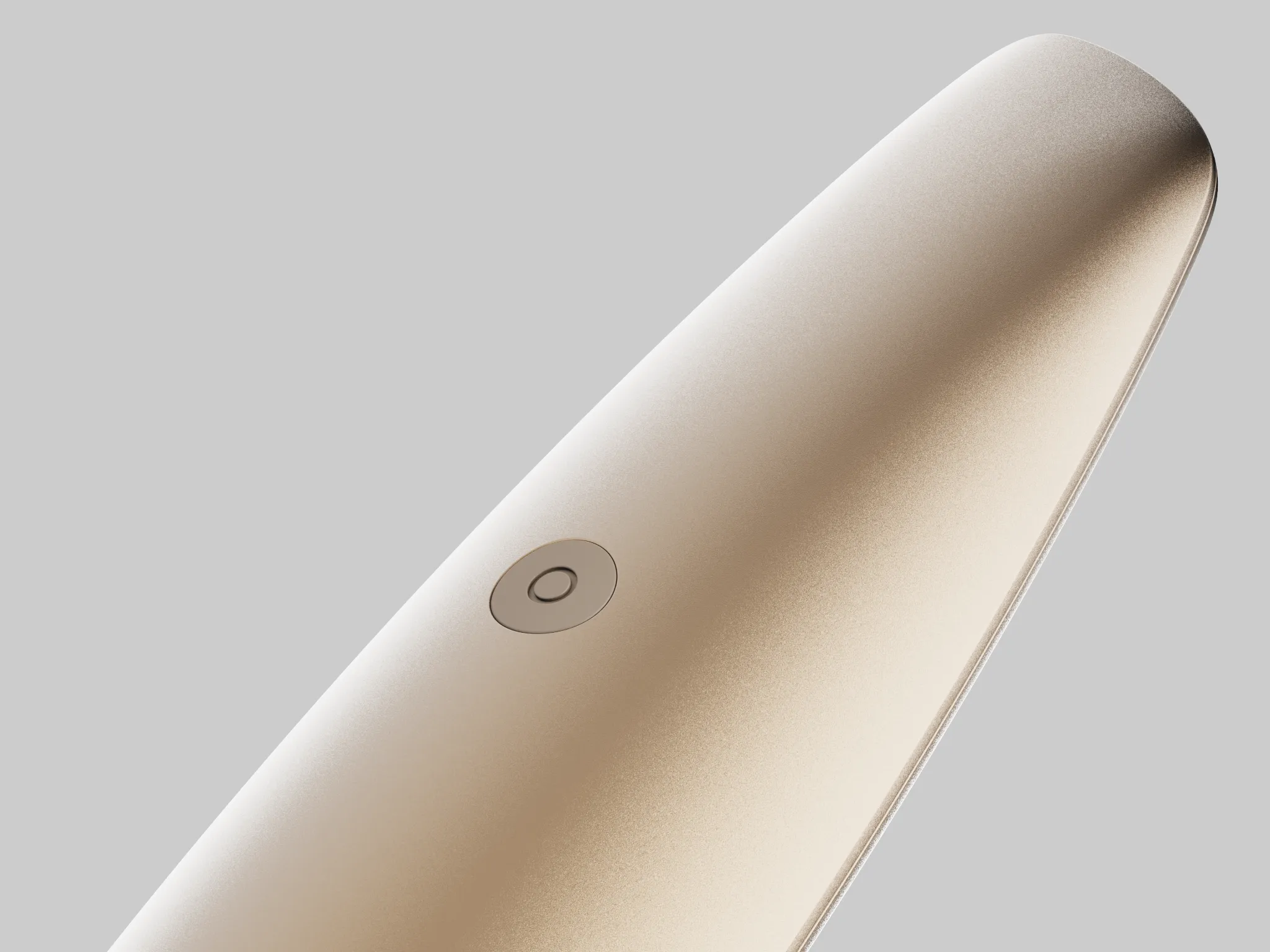 The Touchless Magnetic Peeling Mask is a handheld applicator with a contoured metal spatula for smooth, consistent clay mask application without direct hand contact. Its geometry follows facial contours for precise coverage, while the all-metal housing and standable base enhance durability, hygiene, and storage.