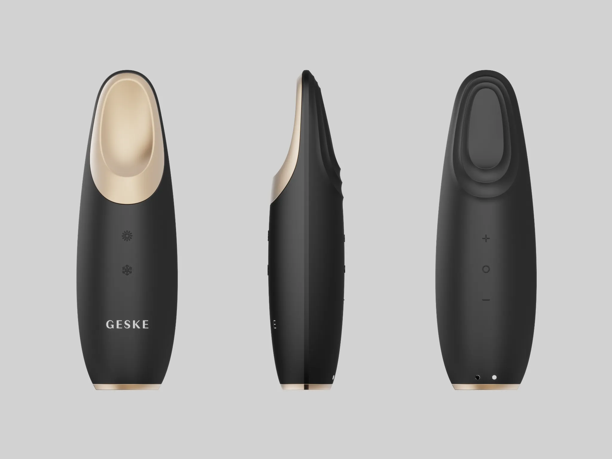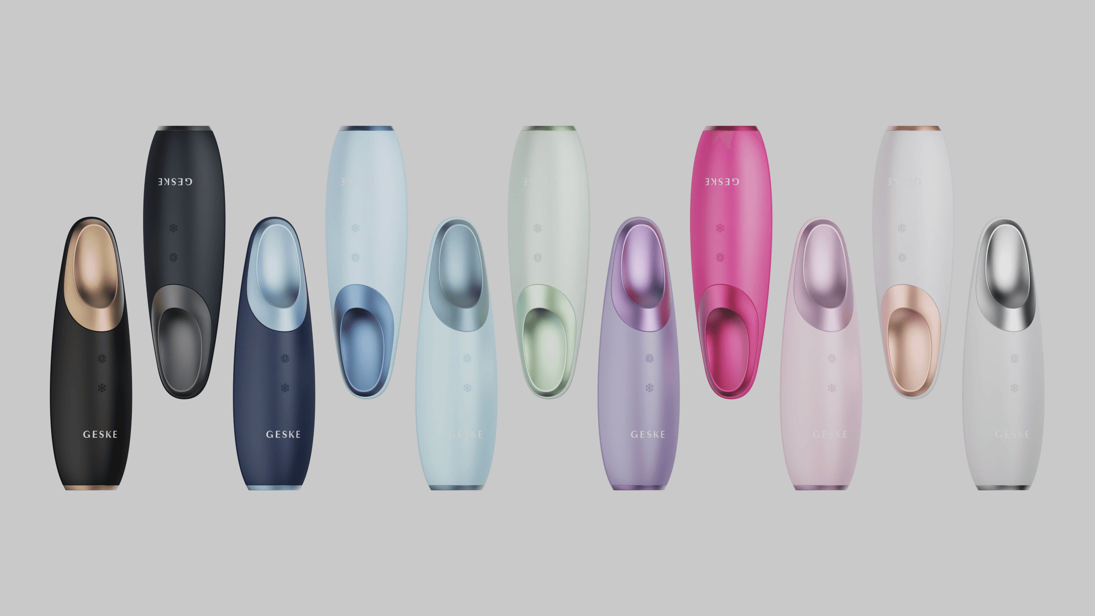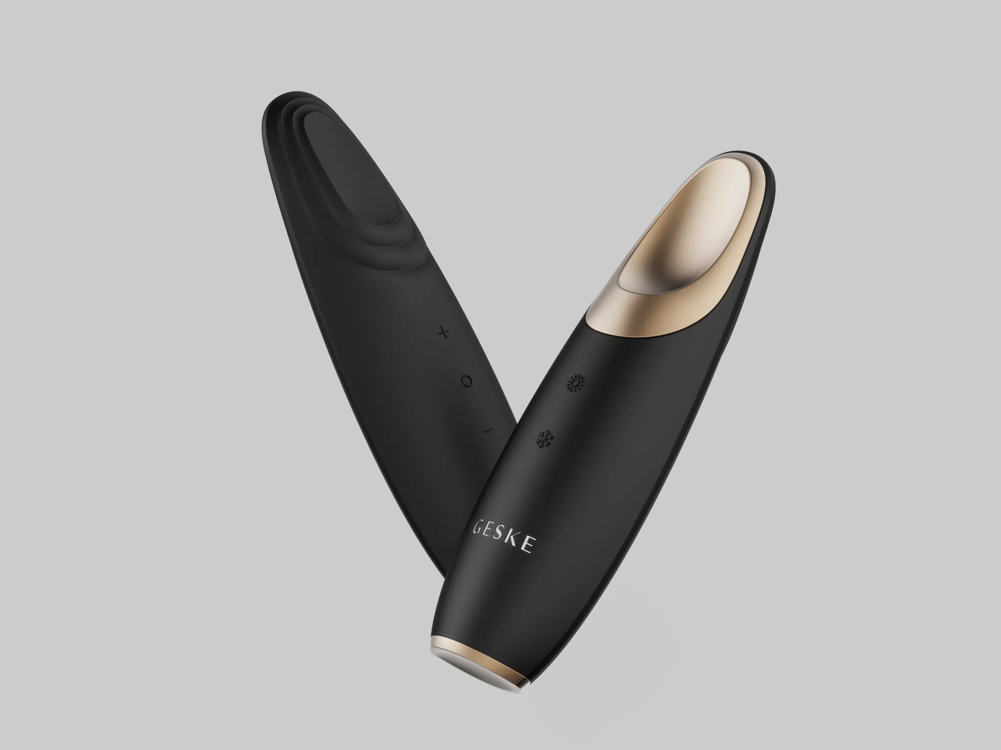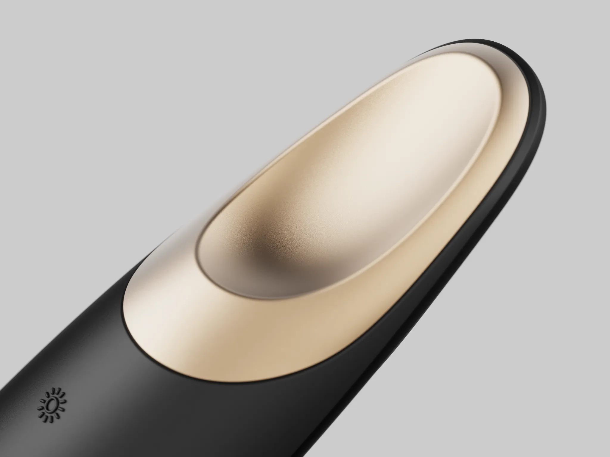 The Warm & Cool Eye Energizer uses a contoured metal applicator to deliver warming up to 45°C and cooling down to 19°C, combined with over 11,000 sonic pulses per minute. The design balances precise application, ergonomic comfort, and manufacturability in a compact, symmetric form.