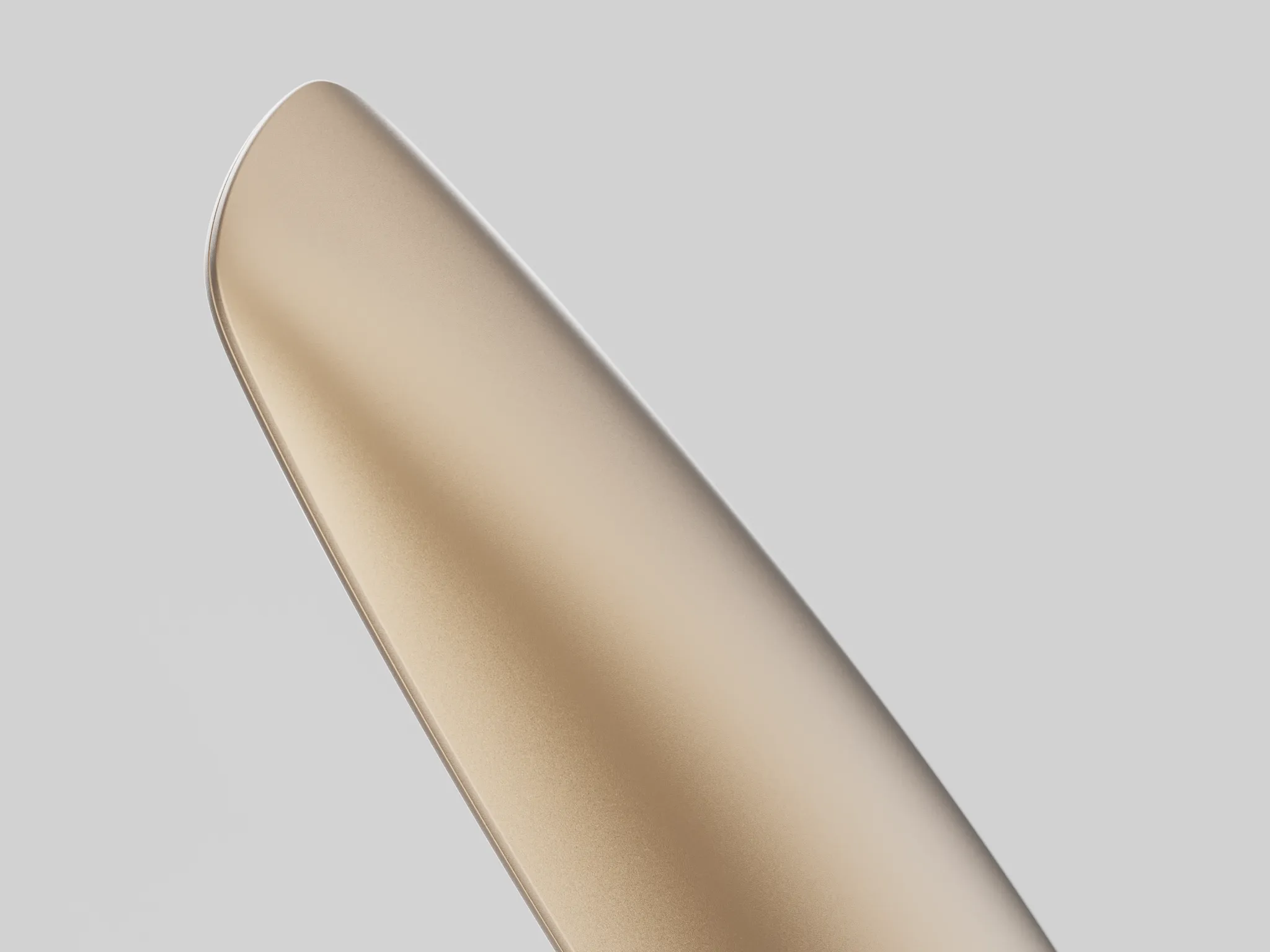 Refined metal applicator geometry and finish for premium feel and functional precision